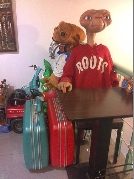 來到2F,一位小男孩正彈著鋼琴,,哈..連ET也帶著行李來用餐..