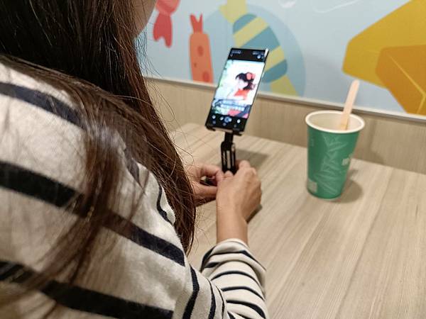 調好MEGACOM療癒貓掌手機架角度。悠閒的吃著零食,喝著茶用手機跟平板看影片追劇 ![]()