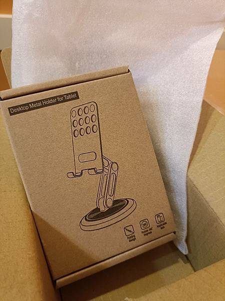 外包裝:紙盒、白色厚袋子裝著機架避免碰撞,一個小勾子調節鬆緊